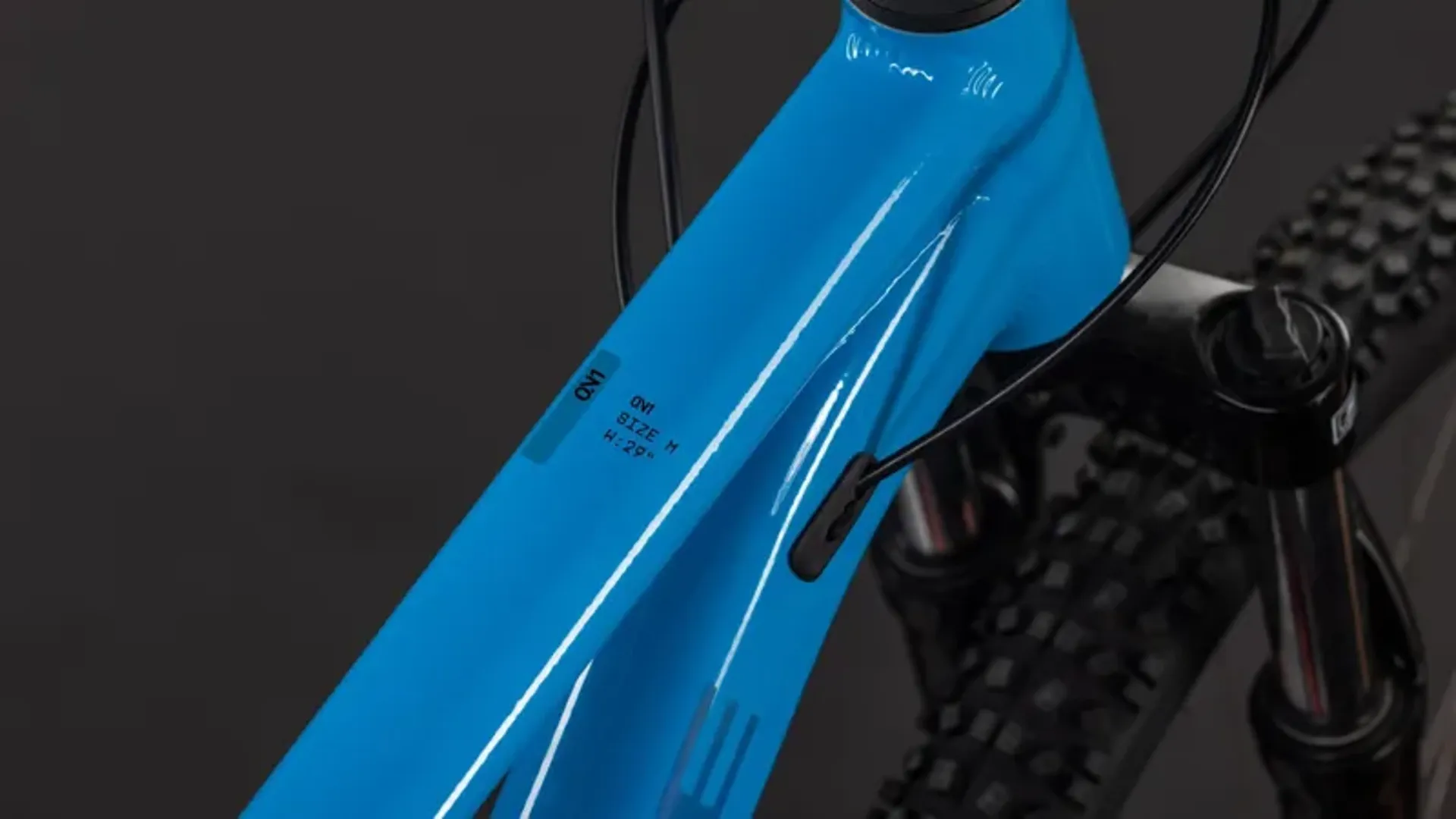 The Aim ONE is fitted with a 100mm suspension fork and grippy 6cm (2.25") tyres to keep you comfortable and in control.